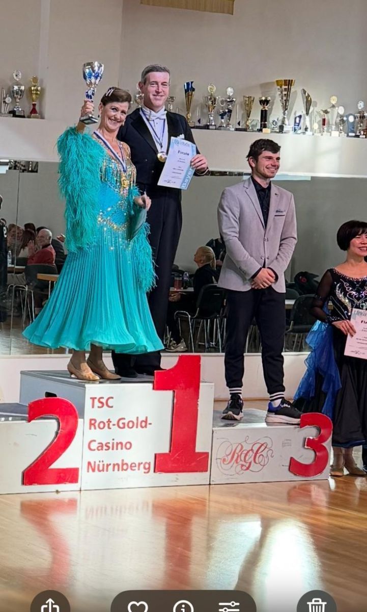 Roswitha Reinold und Frank Rieger fassten den Entschluss, in einem Verein zu tanzen, nachdem sie ein ehemaliges Turnierpaar gesehen hatten und von deren Art zu tanzen total begeistert waren. "So möchten wir auch tanzen können" meinten sie und wurden Mitglied im TSC 71. Dort trainierten sie zunächst 1 - 2 Mal pro Woche und wagten sich 2021 zu einem ersten Tanzturnier, bei dem sie einen beachtlichen 2. Platz erreichten. Ein knappes Jahr später (2022) zeigte sich, dass regelmäßiges Training hilfreich ist: Die beiden Zellerberger wurden Bayerische Meister in der D-Klasse, stiegen in die C-Klasse auf und holten sich den Vizemeistertitel in der C-Klasse. 2023 folgte der Aufstieg in die B- und im Dezember 2024 in die A-Klasse. Bei der Bayerischen Meisterschaft der A-Klasse verfehlten sie mit Platz 7 knapp die Endrunde.