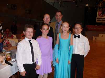 Als Sieger der C-Klasse durften Julian und Linda (beide 11 Jahre) dann noch in der kombinierten Jun. I/II B (bis 15 Jahre) mittanzen, wo sie als einziges startendes Paar sich nicht nur über eine "1" im Wiener Walzer, sondern auch über den dritten Glaspokal und die dritte Goldmedaille freuen konnten. Mit ihnen freute sich auch die mitgereisten Schlachtenbummler und das Trainerpaar Erich und Beate Fenster.